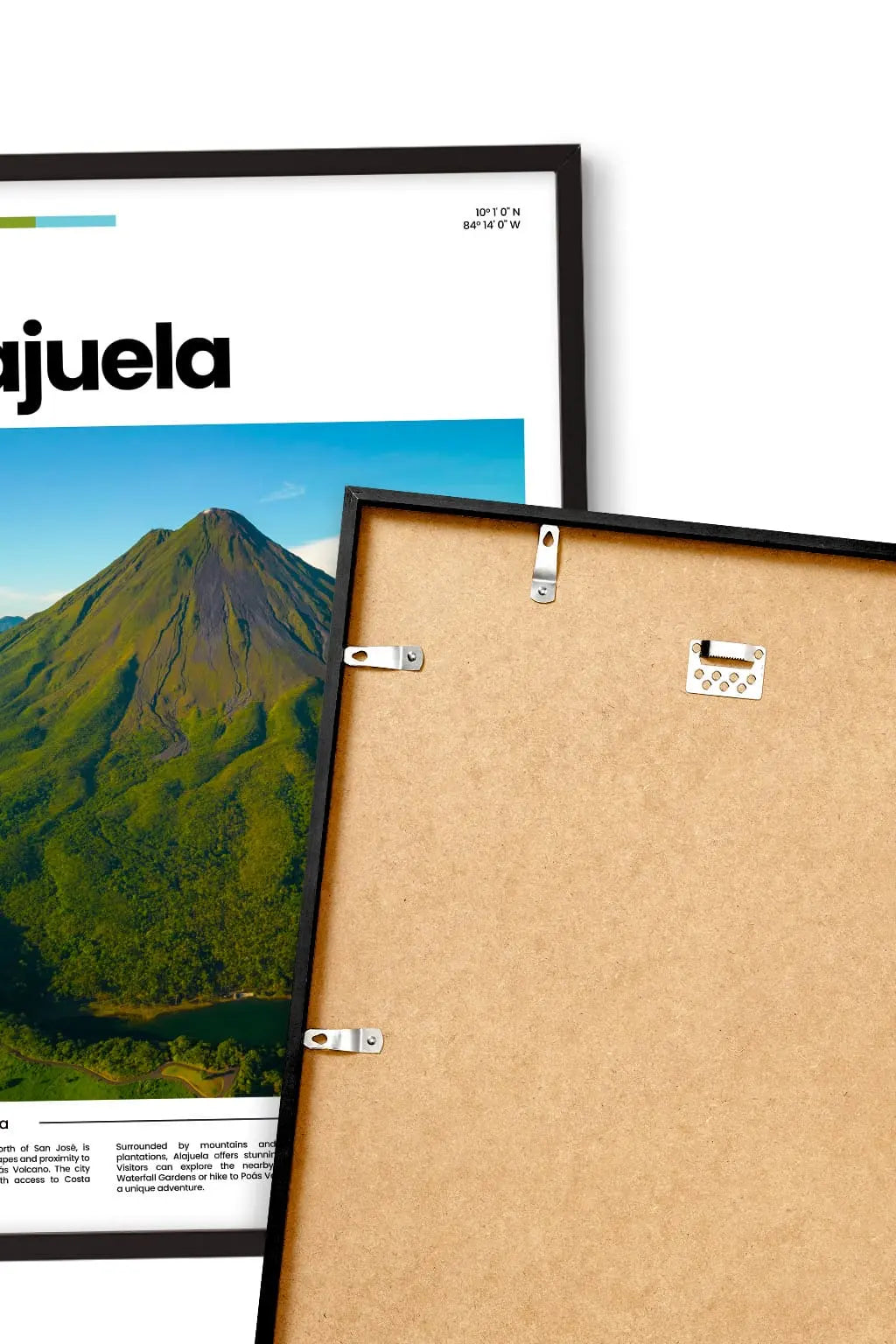 Alajuela, in Costa Rica’s Central Valley near the Juan Santamaría International Airport, is framed by volcanoes, coffee plantations, and lush hills. Local markets, festivals, and traditional culture bring warmth and life to this vibrant highland city. Hung on a wall, this poster brings a breath of escape and memories. Treat yourself to a fragment of this place, or share it as a gift with someone who holds it close to their heart.
