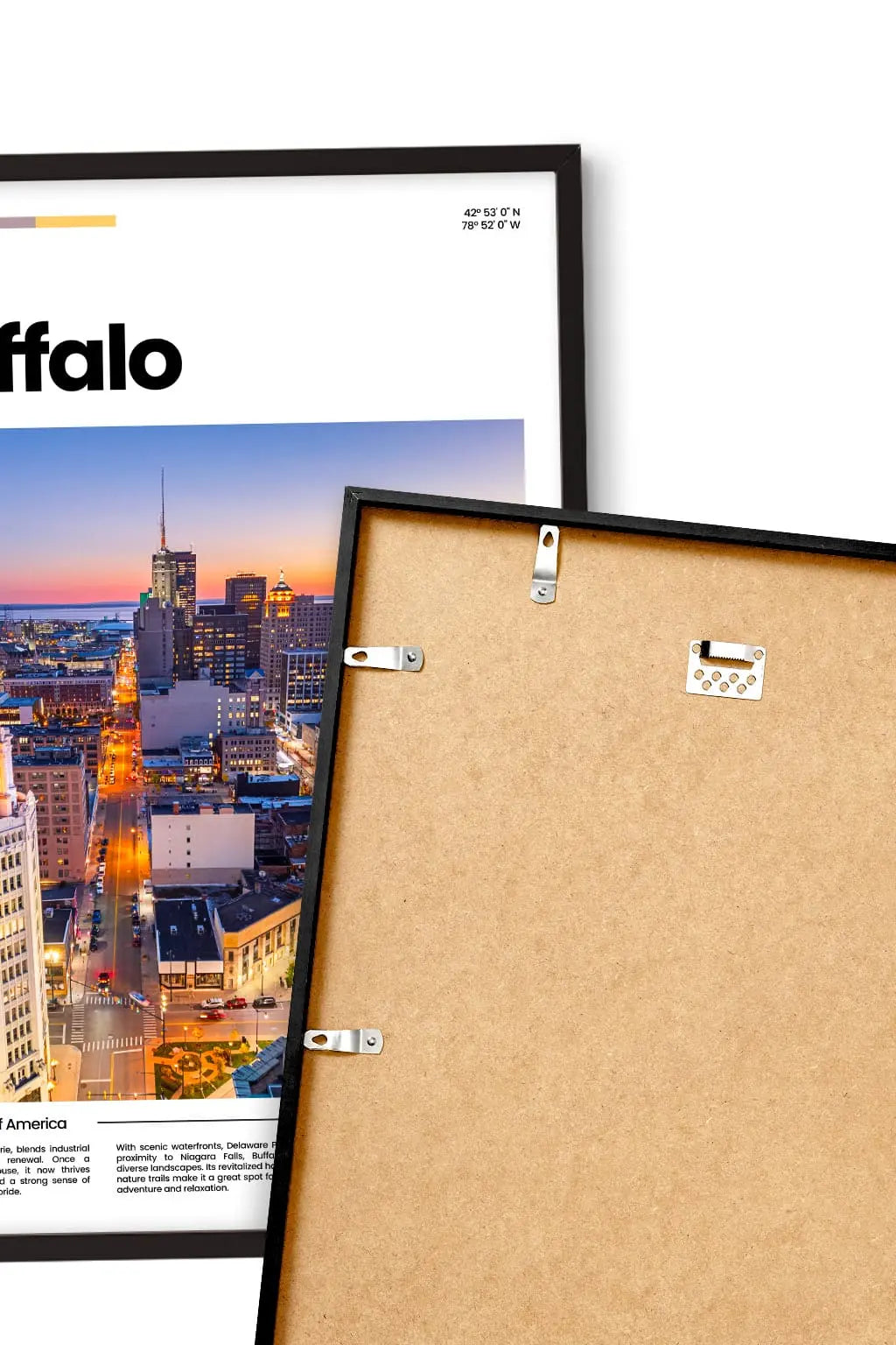 Buffalo, New York, combines historic strength with modern renewal. Near Lake Erie, it feels hardworking, welcoming, and proud. A city built on resilience, creativity, and a strong sense of community. Hung on a wall, this poster brings a breath of escape and memories. Treat yourself to a fragment of this place, or share it as a gift with someone who holds it close to their heart.