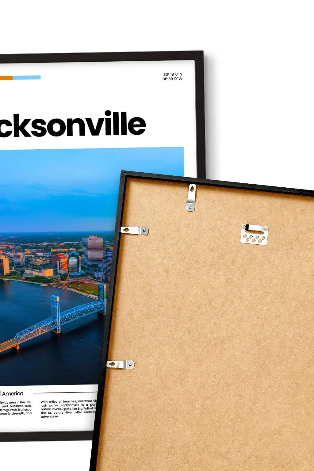 Jacksonville, spread along the St. Johns River and the Atlantic coast, combines city life with a love of the outdoors. Its beaches, parks, and growing downtown give it a balanced, energetic feel a place where nature and community come together every day. Hung on a wall, this poster brings a breath of escape and memories. Treat yourself to a fragment of this place, or share it as a gift with someone who holds it close to their heart.