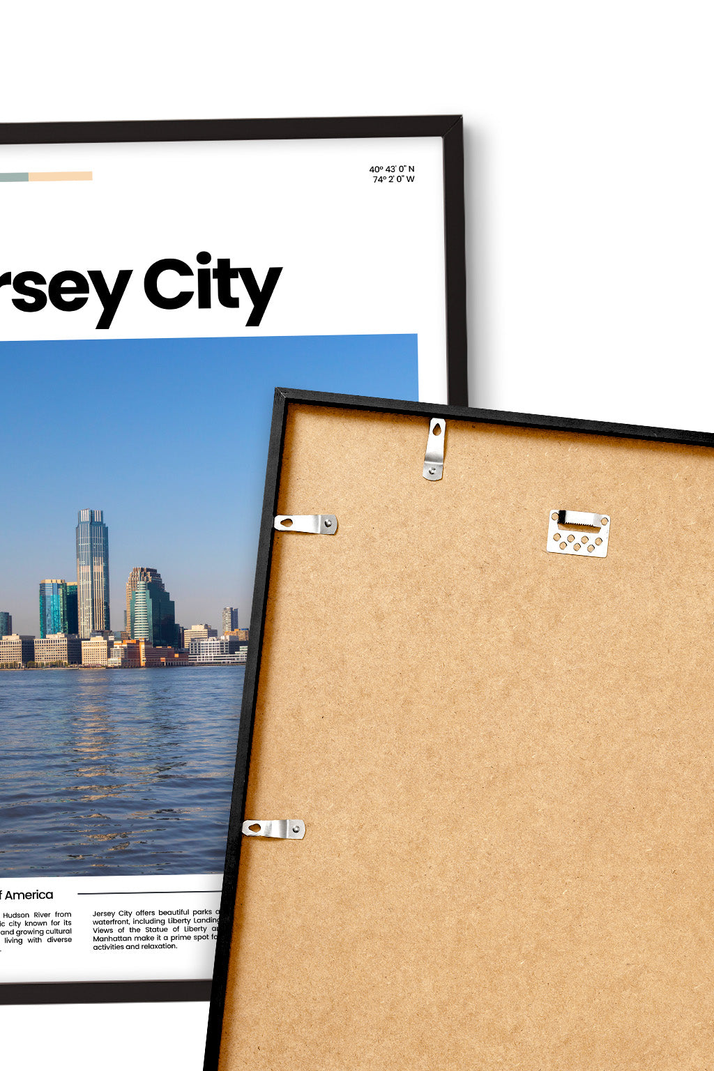 Jersey City, just across the Hudson from Manhattan, combines urban drive with local character. Diverse and fast-growing, it offers skyline views, creative energy, and a strong sense of community a city both ambitious and authentically human. Hung on a wall, this poster brings a breath of escape and memories. Treat yourself to a fragment of this place, or share it as a gift with someone who holds it close to their heart.