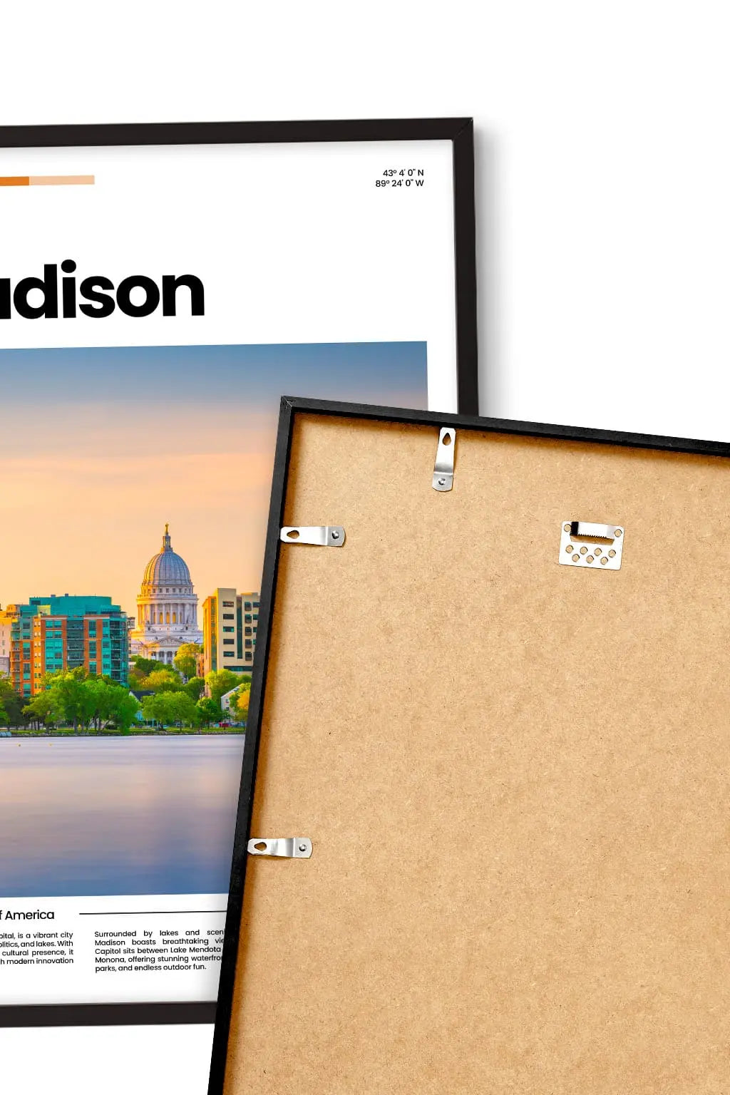 Madison, surrounded by lakes and lively spirit, blends nature, intellect, and community. Its tree-lined streets, vibrant campuses, and welcoming energy create a city that feels both peaceful and inspiring. Hung on a wall, this poster brings a breath of escape and memories. Treat yourself to a fragment of this place, or share it as a gift with someone who holds it close to their heart.