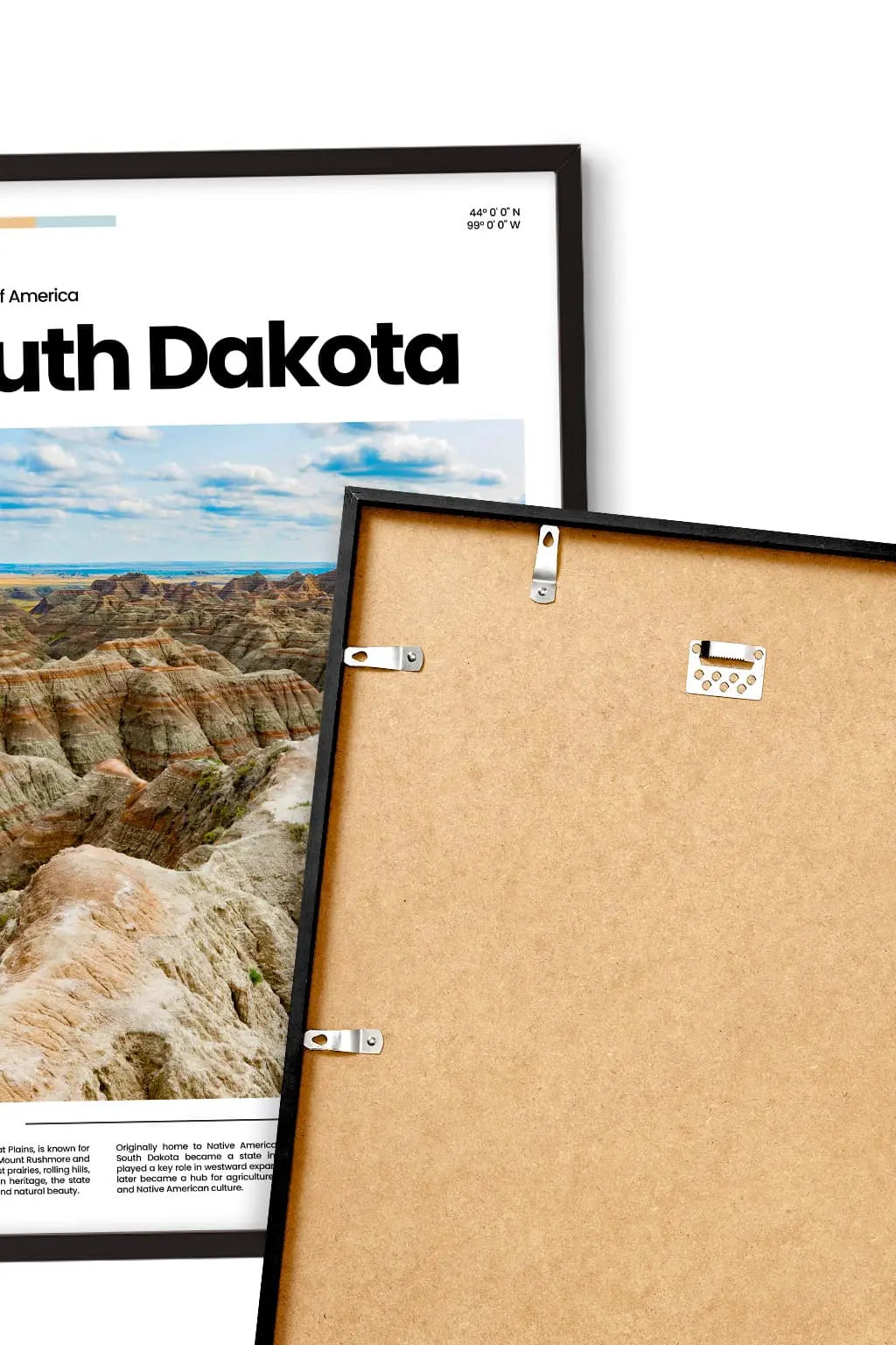 South Dakota, vast and breathtaking, unfolds with prairies, rolling hills, and sacred peaks. From the Badlands to Mount Rushmore, it tells the story of nature’s power and human perseverance, a land of beauty, heritage, and quiet strength. Hung on a wall, this poster brings a breath of escape and memories. Treat yourself to a fragment of this place, or share it as a gift with someone who holds it close to their heart.
