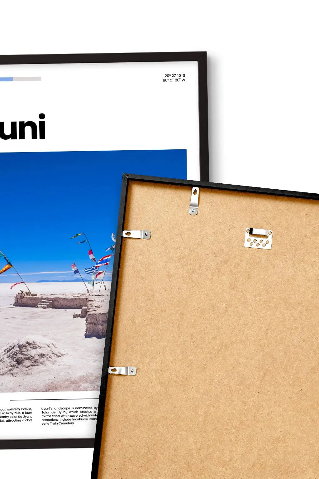 Uyuni, in southwestern Bolivia, is framed by the world’s largest salt flats and surrounding desert landscapes. Endless white expanses, volcanic horizons, and reflective pools create a surreal, otherworldly beauty. The region feels vast, mystical, and quietly timeless. Hung on a wall, this poster brings a breath of escape and memories. Treat yourself to a fragment of this place, or share it as a gift with someone who holds it close to their heart.
